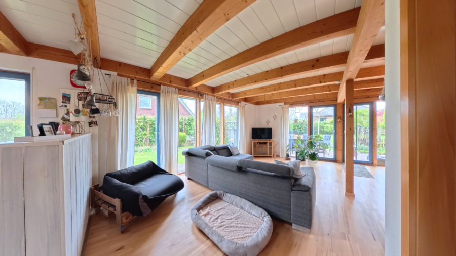 Dieses äußerst gepflegte Einfamilienhaus überzeugt nicht nur durch seinen Charme und seine durchdachte Aufteilung, sondern auch durch eine gute Energieeffizienz und die nachhaltige Bauweise in Holzständerkonstruktion – eine Kombination, die zeitgemäßes Wohnen und ein angenehmes Raumklima ideal vereint.