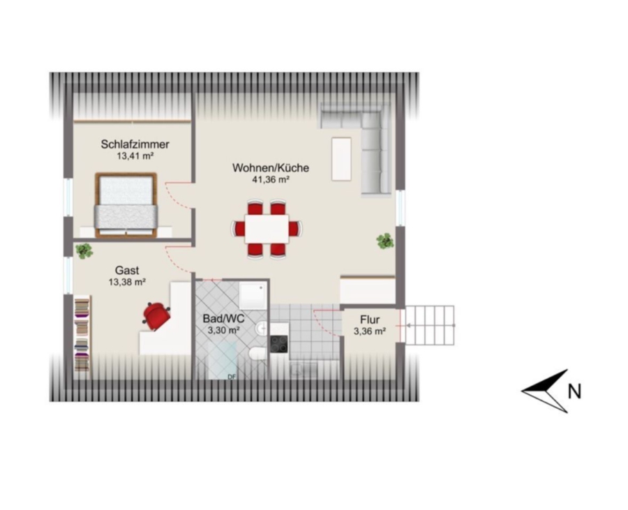 - vermietete Wohnung im Dachgeschoss