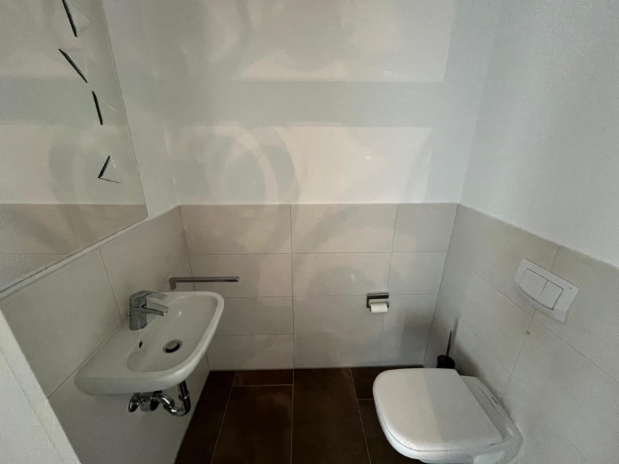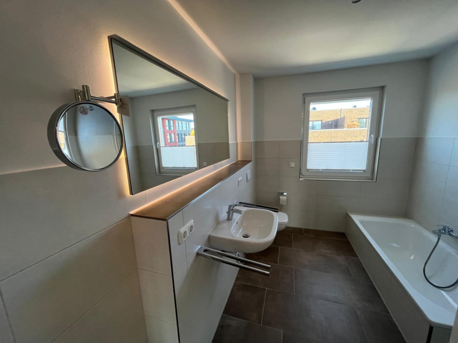 Die Küche überzeugt durch durchdachtes Design, beispielsweise eine höhergelegte Spülmaschine und viel Stauraum in den Schränken. Angrenzend befindet sich der Hauswirtschaftsraum mit Podest und Anschlüssen für Waschmaschine und Trockner. Das Hauptbad bietet sowohl eine bodentiefe Dusche als auch eine tiefer eingelassene Badewanne. Ein hinterleuchteter Spiegel sorgt zusätzlich für Ambiente. Ergänzt wird das Platzangebot durch ein separates Gäste-WC.